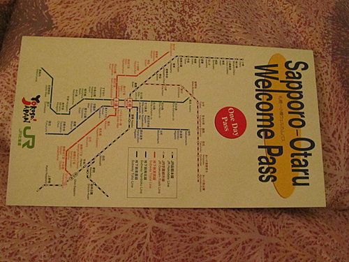 小樽一日遊, 請務必買小樽一日卷, sapporo-otaru welcome pass 1500日圓, 包含札幌到小樽之間的JR一日卷跟一張札幌地鐵一日卷. JR一日卷要指定日期, 買的時候就要告訴她是哪一天要去. 另一張札幌地鐵一日卷, 則是進地鐵站才算啟用, 可以在改天專門找一天在札幌市內趴趴走時用. 這張welcome pass要帶護照在JR旅行中心購買(在札幌車站西口跟北口都有), 但是旅遊中心十點才開門, 所以除非要坐十點以後的車, 否則應該前一天就買好. 班次很多, 車程約三四十分鐘, 看你搭上哪一種車. 一樣是自由座. 通常只有第四節車廂是指定席. 去程如果有位置請坐在右側, 會經過一段日本海, 景色很美. 會先到小樽築港, 南小樽, 然後才是小樽. 小樽築港有很大的摩天輪跟shopping mall. 南小樽已經很靠近鐘樓. 我們因為要在小樽晃一天, 為了節省腳力, 所以還是在小樽下車.