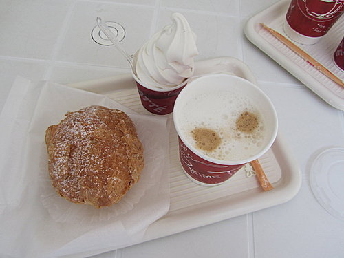 再來就是一堆肥死人撐死人不償命的甜點: 六花亭, 北菓樓, LeTAO跟六層霜淇淋. 這些甜點都應該去試試, 才知道回國時要帶哪種拌手禮, 只要肚子還撐的下. 特別推薦北菓樓的大泡芙, 泡芙+小杯霜淇淋+咖啡, 一個套餐剛剛好. 這裡的甜點, 真的是必必吃. 最後可以挺一個大肚子, 去逛逛玻璃工藝品+銀之鐘的咖啡, 就可以回車站前的巴士站坐車上天狗山.